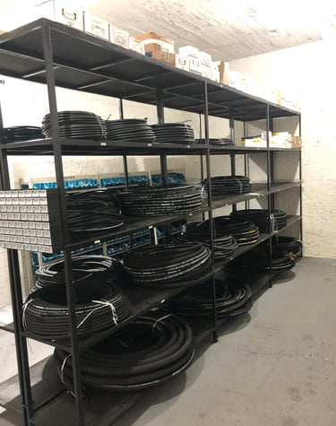 Mangueiras, adaptadores, conexões pneumáticas e hidráulicas.