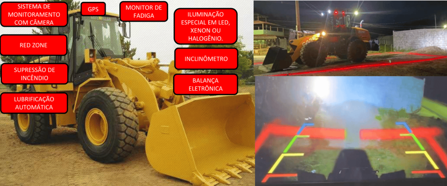 Dispositivos de segurança para ônibus, caminhões, empilhadeiras, máquinas e equipamentos.